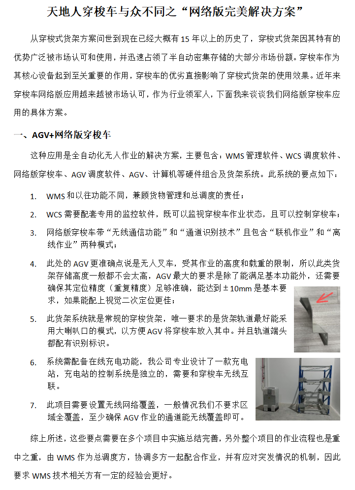 天地人穿梭车与众不同系列之“网络版完美解决方案”